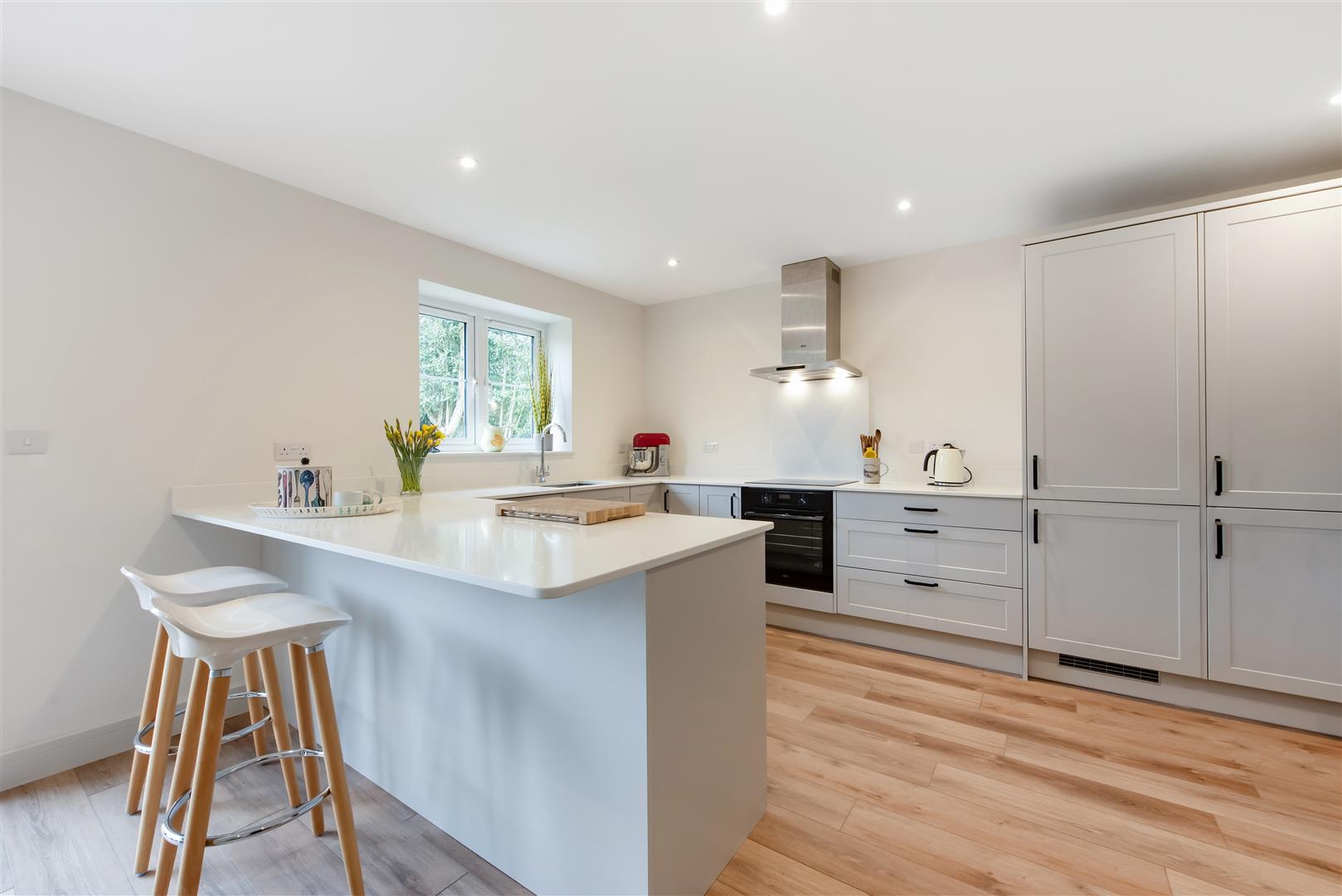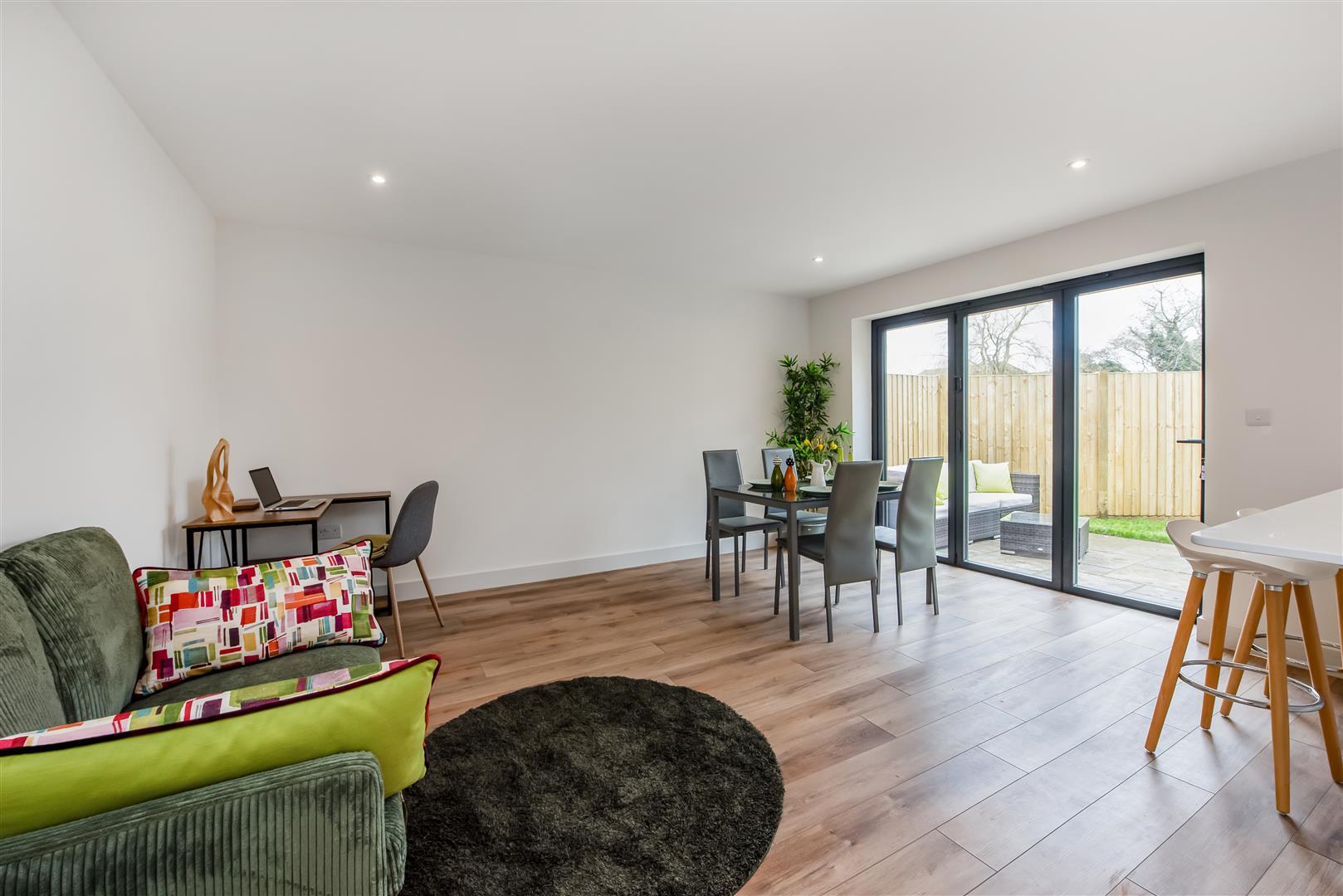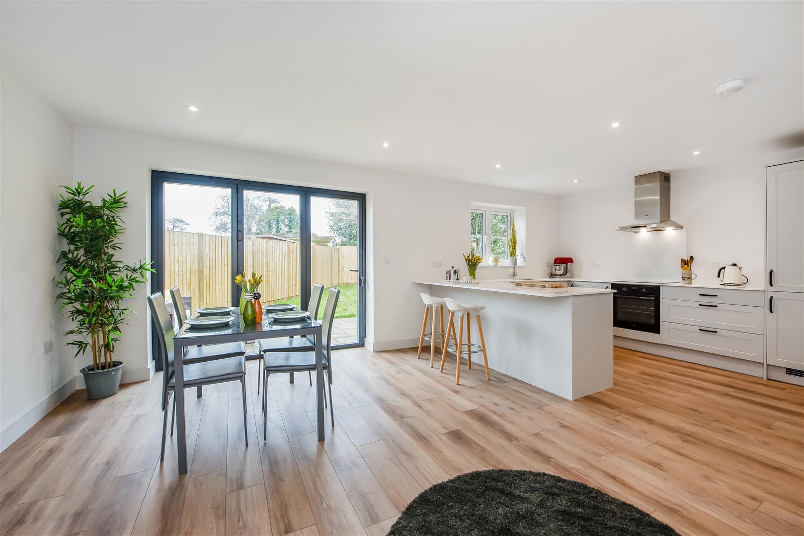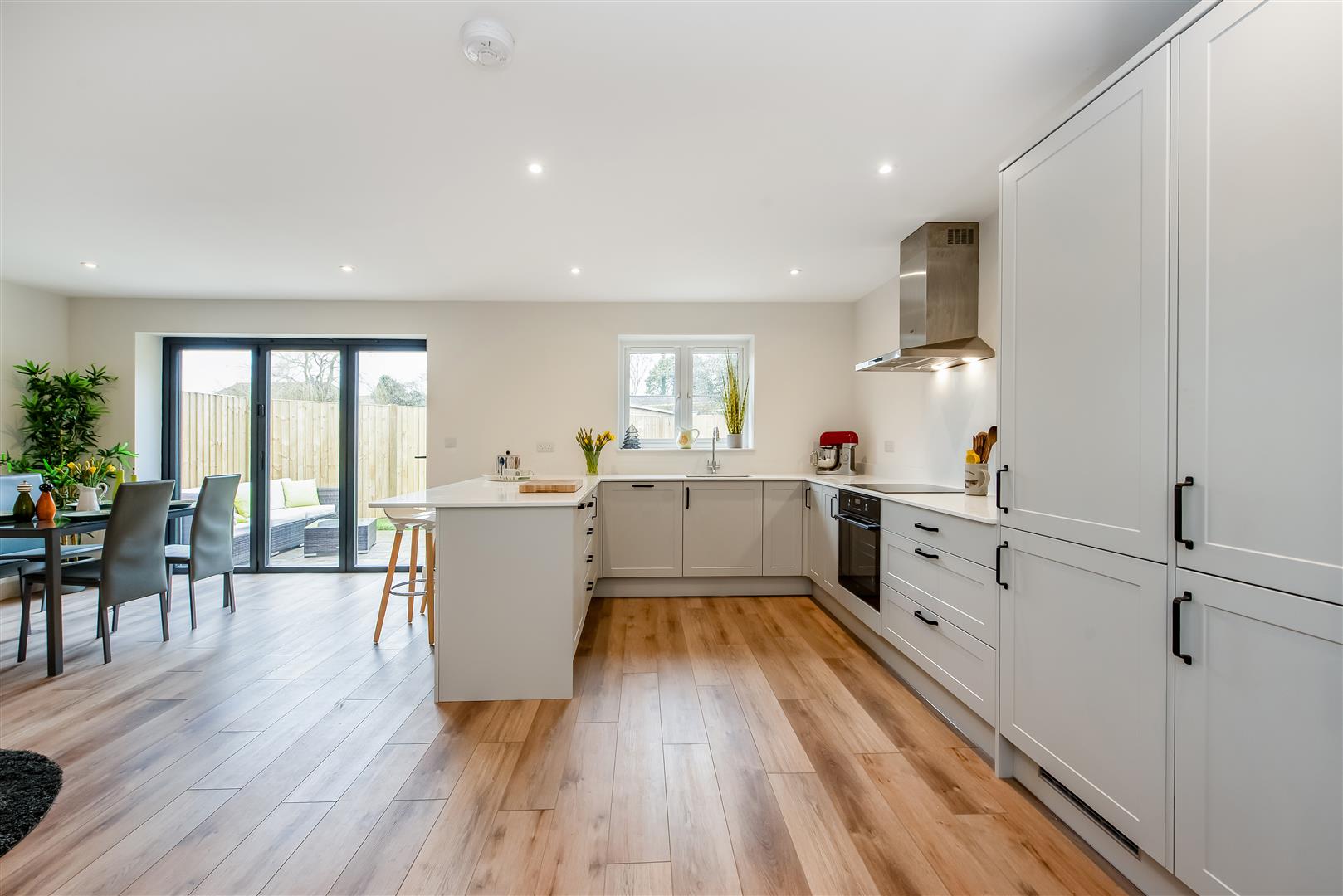 • Large kitchen/dining room with fitted appliances, breakfast bar and doors to the patio and rear garden